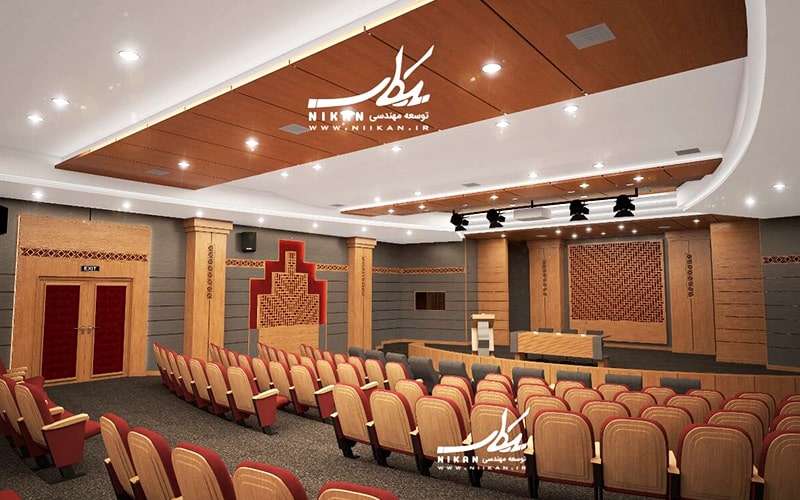 سالن همایش ساختمان جدید الاحداث شرکت توزیع نیروی برق زنجان در شهر زنجان با ظرفیت 350 نفر در بخش های معماری داخلی و دکوراسیون ، نور ، صوت، ضبط و پخش تصویر طراحی و با مشارکت شرکت همکار اجرا و تجهیز گردید. متریال بکار رفته MDF، کناف و پارچه می باشد.